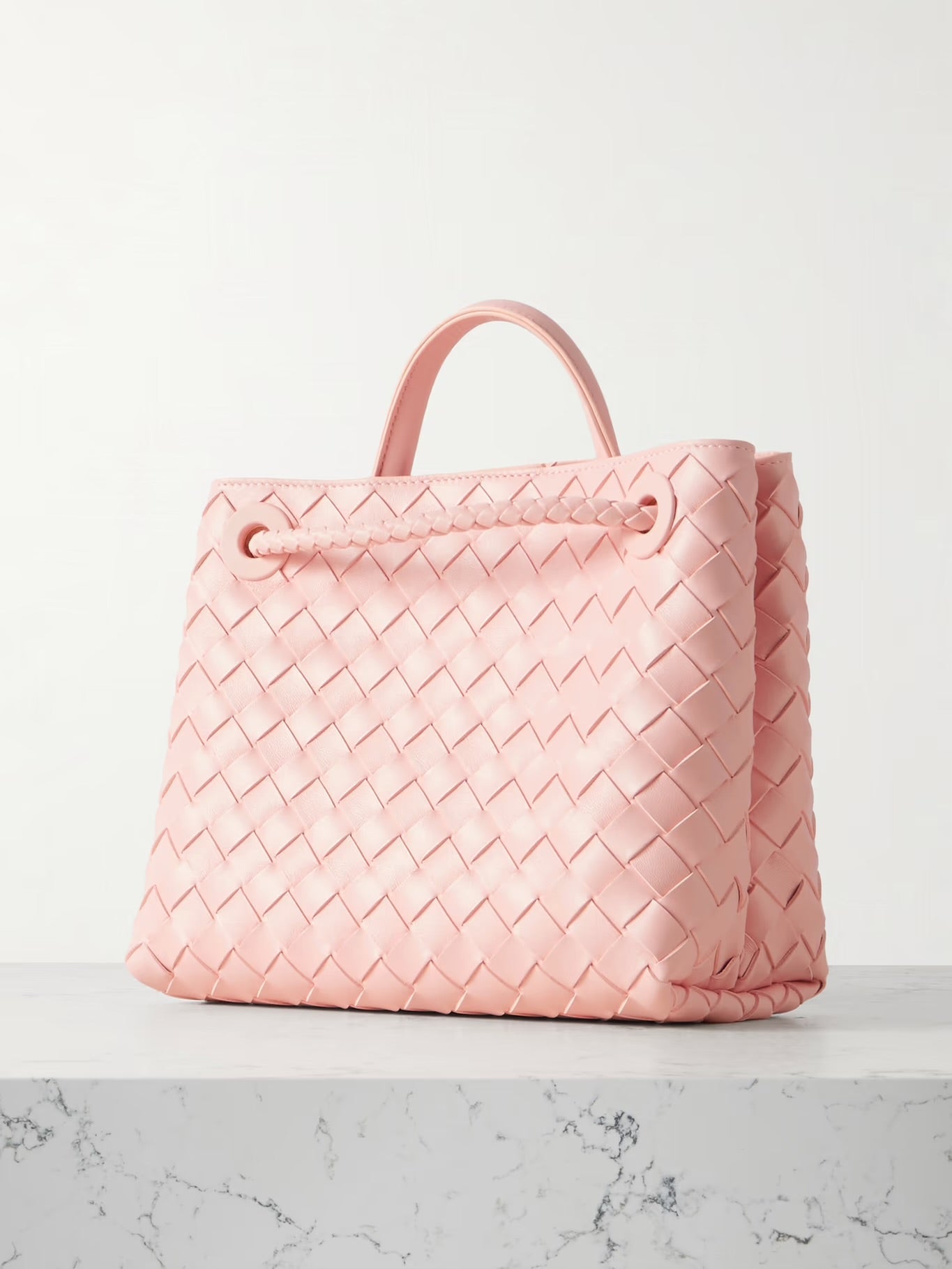 Rosé Renkli Örgü Desenli Tasarımcı Çanta – Feminen Zarafet ve Lüks Tasarımın Buluşması